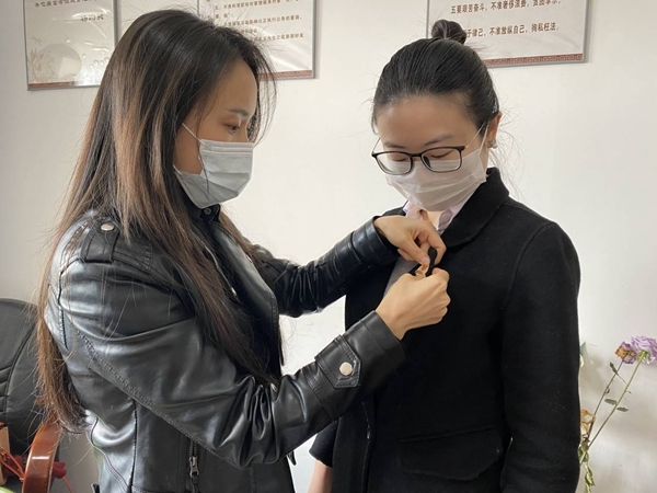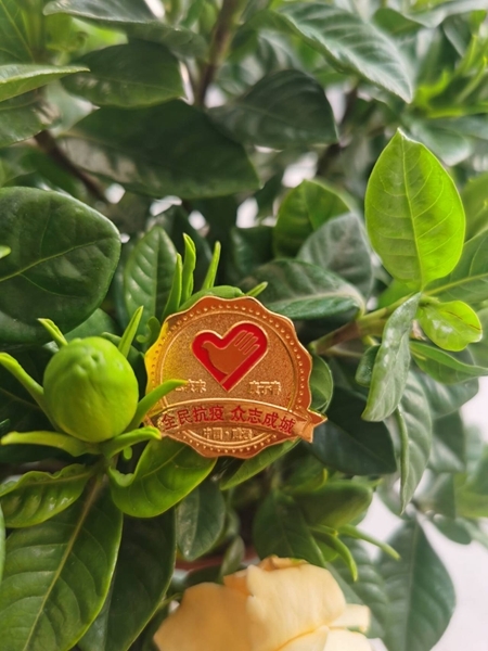 记者看到,这枚纪念章呈花朵型,上面印有青年志愿者标志。“全民抗疫 众志成城”八个红字格外显眼。为了丰富纪念章内容,工作人员反复筛选纪念章样式,并与设计师多次沟通改稿,定制出这枚限量版的威远战“疫”勋章。