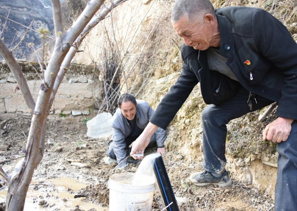 于是,背水种果树一度成了当地村民调整产业结构的行动自觉。每年开春和7月份,就是果树最“渴”的时候,也是村民们背水最忙的时候。灵华村种植大户李代全种了6.5亩甜樱桃、脆红李等果树。“以前背水从山下爬到山上,跑一趟来回要接近一个小时,背一次水才灌两棵小树苗。”李代全说,背水费力又费时,为了不让果树渴死,他常和左邻右舍换工背水。“现在总算盼来了‘水到渠成’。”