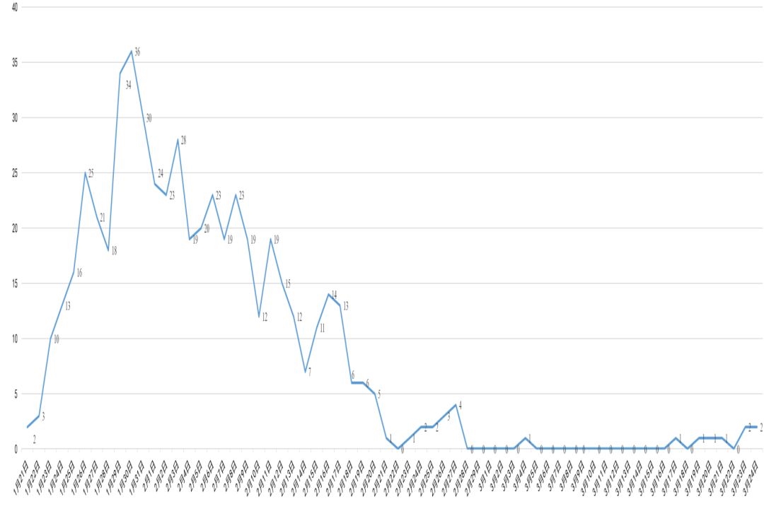 四川省新冠肺炎每日新增确诊病例变化曲线图