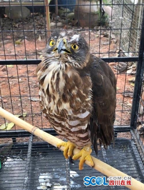 经鉴定,两只猛禽中体型较大的一只为普通鵟,另外一只为松雀鹰,均属国家二级保护动物。幸运的是,这两只鸟的身体并无大碍,已经被送往乐山市野生动物救助点进行救助,后期经过综合评估后将放归自然。