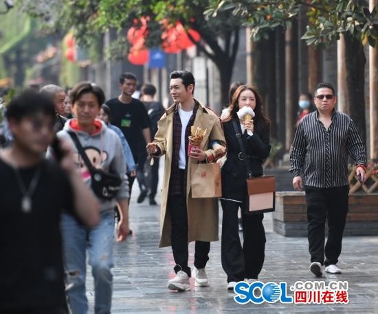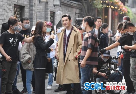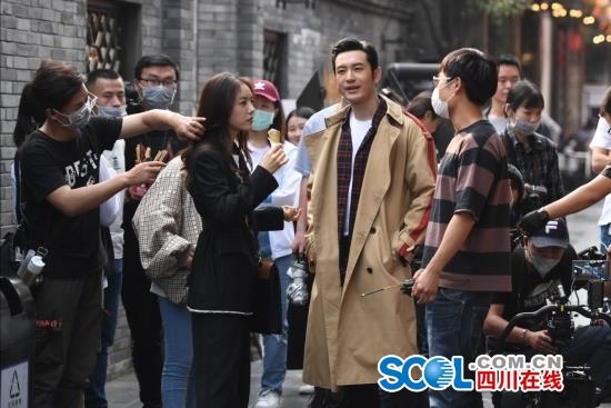 3月25日下午,黄晓明来到成都市宽窄巷子和成都群众演员一起拍摄一部电视连续剧《危机先生》,现场吸引了众多市民前来观看。这部连续剧主要反应在成都的故事。已拍摄了三个月,摄制组还将在成都摄制一个月时间。