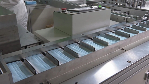 “口罩厂现在建有一个十万级的生产车间,包括一条半自动的N95口罩生产线和两条全自动的一次性口罩生产线。半自动的N95生产线目前每天产量是5000只,接下来一周会再增加生产工人,届时有望达到日产量10000只,全自动的一次性口罩生产线每天产量10万只,两条的话就可以达到日产20万只。”口罩生产厂厂长陈鑫介绍说。