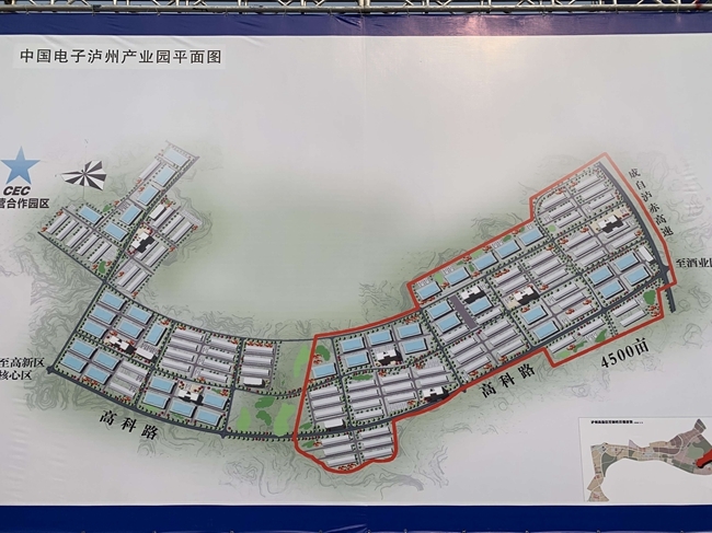 中国电子泸州产业园,项目选址在泸州市高新区,建设用地约4500亩,建设内容包括10公里配套道路以及160万平方米生产、研发、办公用房,40万平方米生活配套及展示用房。