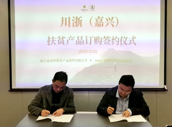 浙川东西部扶贫协作再结硕果。3月25日,海宁市名特优农产品公司与四川省供销社云背篓科技集团签订“四川扶贫”公益品牌用标产品采购合同,订购金额达1亿元。双方还就“四川扶贫”公益品牌产品推广销售,达成长期战略合作协议。