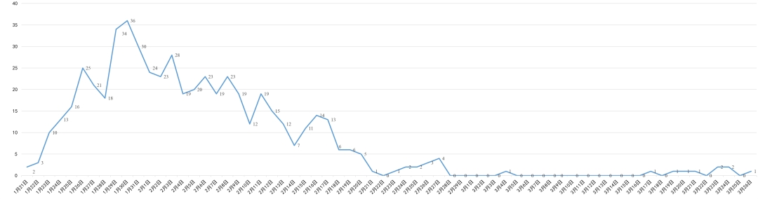四川省新冠肺炎每日新增确诊病例变化曲线图