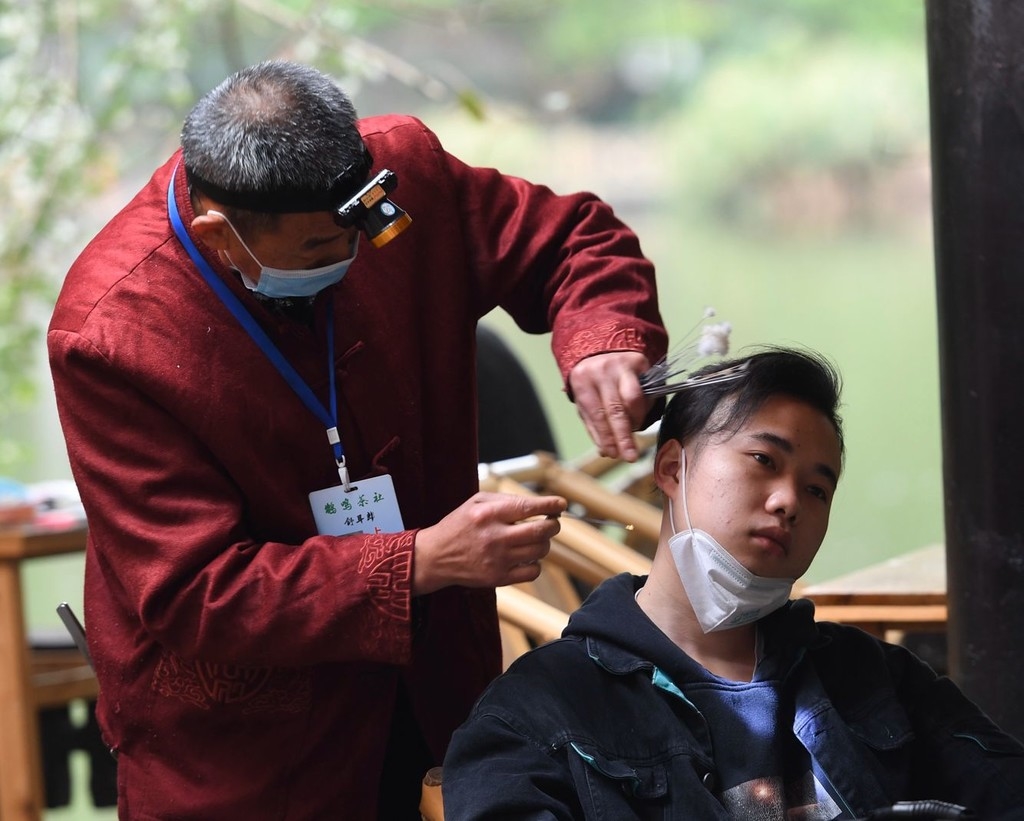 此外,茶社每天会进行三次消毒,并设置和配备了废弃口罩回收桶、消毒液等防疫物资。来吧,朋友!盖碗茶、竹靠椅、掏耳朵……等着你来!