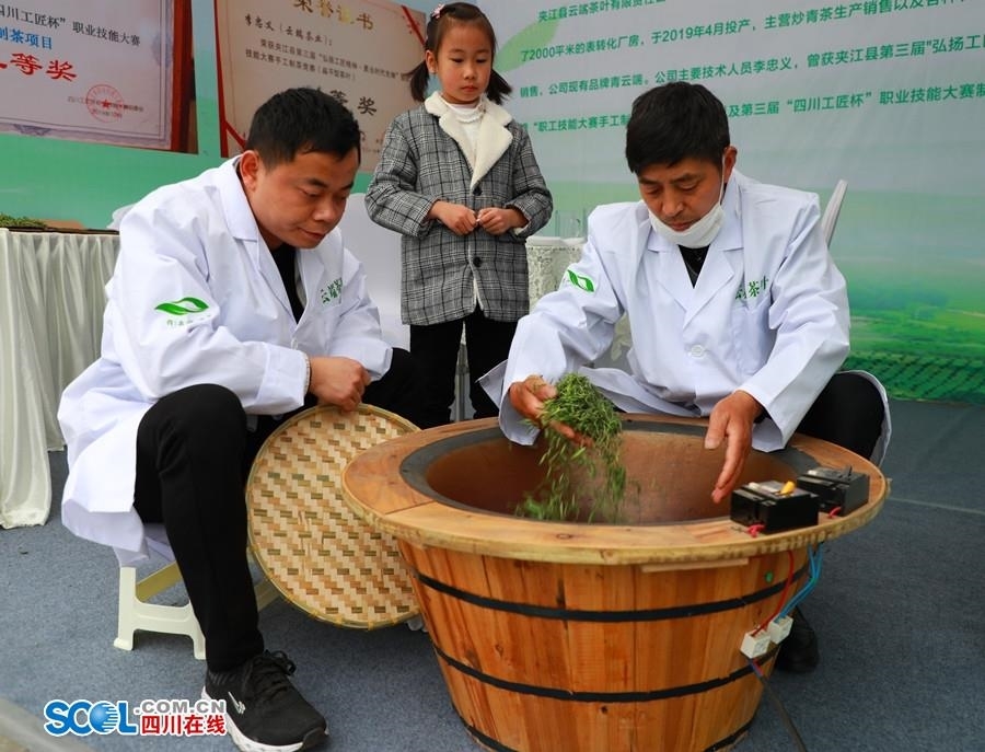 3月28日中国夹江首届“青衣江茶”采茶节手工制茶比赛上,有一位比李忠义小20岁的青年马仕福在和他同台竞争。四川圣千润茶业有限公司位于夹江县木城镇,5年前开始从粗加工向自创品牌转型。为了将夹江茶叶的产地优势与更发达地区的经营和技术优势相结合,公司最近3年每年都要派马仕福远到江苏的茶厂学习锻炼。年轻人的的青衣江茶手工技艺,又吸收了江南的味道。