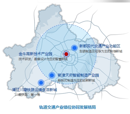 空间维方面:通过优化产业空间布局,实现产业跨区协同,整合社会资源。一是立足金牛、新都、新津、蒲江四大产业功能区的区位优势和产业基础,精准定位细分领域,推动功能区协同发展;二是依托“金青新”三地具有区域带动型的产业项目,深化大港区一体化发展;三是按照“优势互补、互利共赢”的原则,推动成都与周边市州积极开展产业链配套协作和共性技术联合攻关。