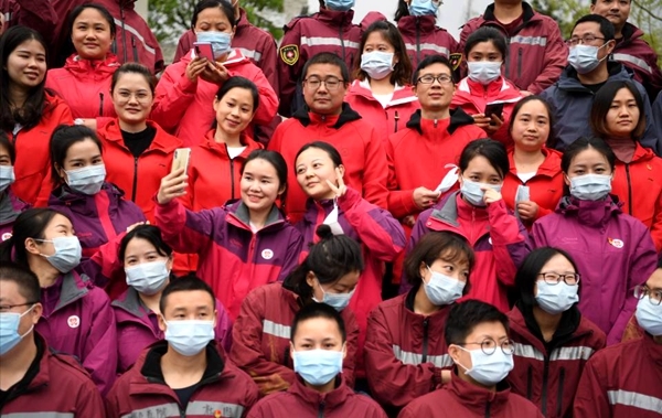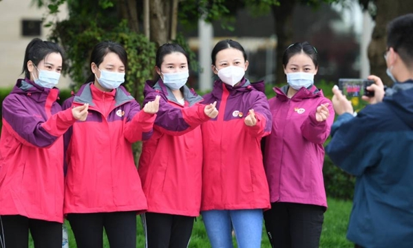 “我们明天就可以回家了。”3月30日,在眉山市黑龙滩长岛天堂洲际酒店门口,我省援助湖北第六批医疗队303名英雄正在隔离点脱下口罩留影,“明天大家就要回到各自的市州了,今天留个影。”