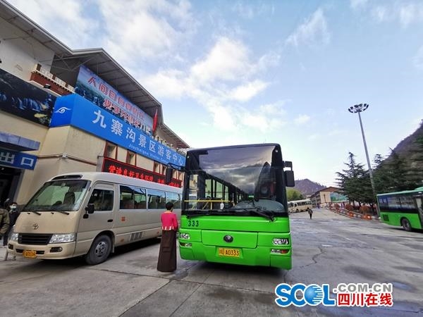 四川在线消息(记者 徐中成 周琳/图)3月31日,九寨沟景区恢复开园。早上8点,在位于九寨沟县漳扎镇上蓝天停车场的临时游客中心,经过测体温、验门票等流程后,来自省内外的游客戴着口罩,分批坐上观光车进入景区,开启一段美丽之旅。