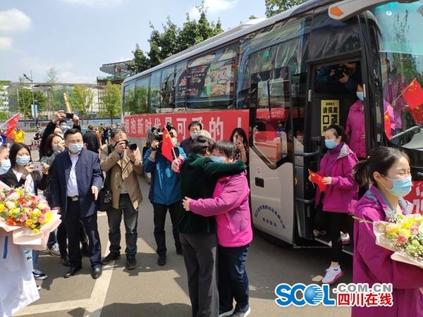 3月30日,医疗队成员第二次核酸检测结果全部显示为阴性,正式解除14天的隔离。3月31日上午,20名队员从集中隔离点出发,返回家乡资阳。