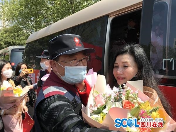 四川在线消息(江涛 记者 燕巧)“欢迎,欢迎回家!”3月31日12时,警察开道,3辆大巴车驶入广元市政府广场,广元第二批援助湖北医疗队的20名队员终于回到家乡。