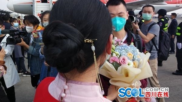 她是四川省人民医院的护士吴婷,她带着昨晚上预订的蓝绣球花来迎接同是省人民医院的护士老公回家。今天她特意带着绣球花来,她说:“从谈恋爱到结婚都是老公给我送,这次是我给老公送!"