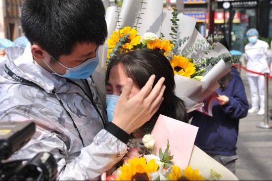 队员们下车的瞬间,现场响起了欢迎的掌声“致敬仁济英雄,欢迎回家!”医院党委书记徐荣华,党委副书记、院长周谦等分别向英雄们献上鲜花、《驰援湖北纪念画册》。队长王宾友代表队员们感谢医院在思想上、物资上的关怀和照顾,队员夏赟的家属吴姝也表达了医院在各方面细致入微的工作,解除了他的后顾之忧,使队员们能心无旁骛安心工作。