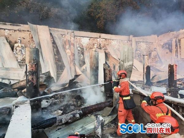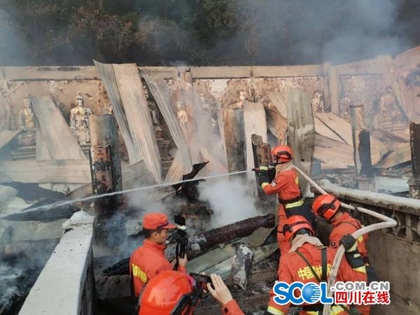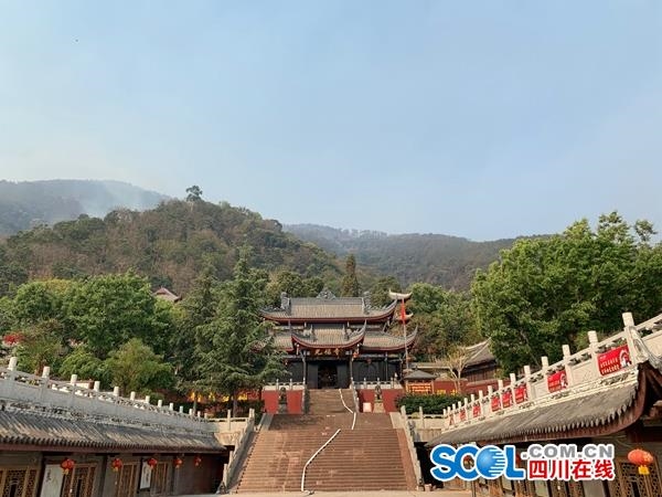 四川在线消息(记者 何勤华 王云 袁敏)4月1日8时左右,凉山森林消防支队50名指战员在泸山三清观架设水泵打开突破口后向北扑打,对三清观到五祖庵之间的余火烟点进行清理,重点对五祖庵已烧毁的木头进行浇灭,全力保卫五祖庵,防止火势向下蔓延,危及其他寺庙及周边设施。