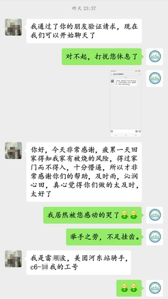 “电话联系先问能不能给电动车充电,不能影响明天的工作,能不能睡觉都无所谓。”宋佼岭说,这位外卖小哥家住马道液化气站附近,夜里下班回家才发现小区因山火逼近组织撤离而被封锁了,在网上看到群里各种转发的消息,才找上了门,“一进门就一直说谢谢。住进房间后,还通过微信一直说感谢。”