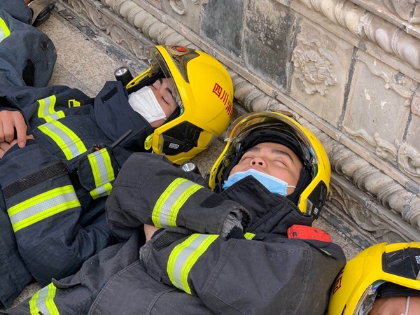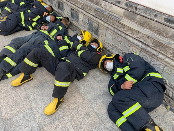 西昌森林火灾发生后,连续进行高强度工作,消防员们常常会被累到在休息时“秒睡”。记者现场看到,消防员们就地或靠墙,或直接躺在地上,相互依靠,抓住短暂的休息时间,让自己尽量保持状态。