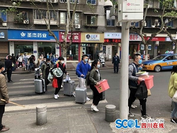 4月1日10时25分,早上第一批报到的高三1至4班的学子统一返回北校区宿舍。陈向前 摄