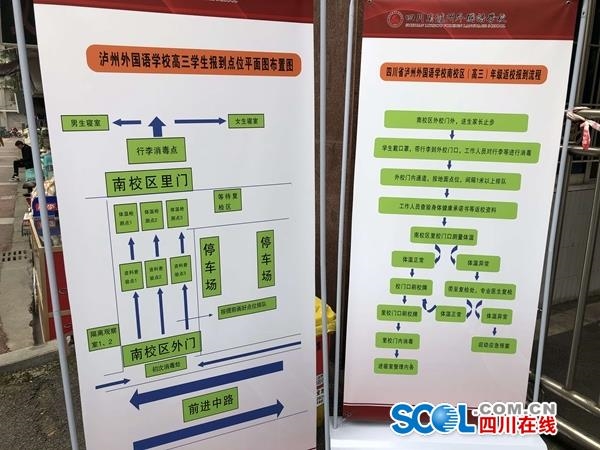 4月1日上午,泸州外国语学校高三学生开学报到流程以及示意图。陈向前 摄