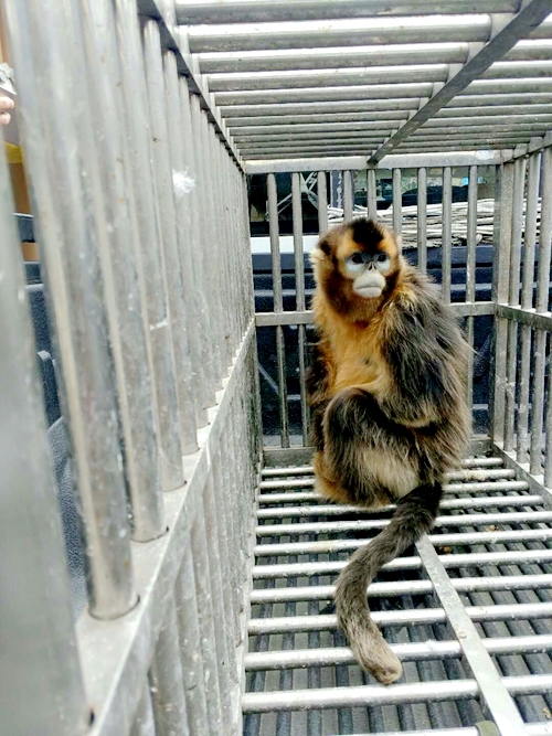 中午13:10分,保护区和县林业局野保股、森林公安等单位工作人员一起对金丝猴进行护送,于下午15点左右,将金丝猴护送至碧峰峡动物园救护中心。通过救护中心兽医的检查,初步诊断为该金丝猴可能存在寄生虫,加之因饥饿导致身体虚弱,跟不上猴群,准确的诊断仍需做进一步的检查,所以决定将其留在碧峰峡动物园救护中心进行治疗,待身体痊愈后,进行综合评估后再决定把金丝猴放归野外。