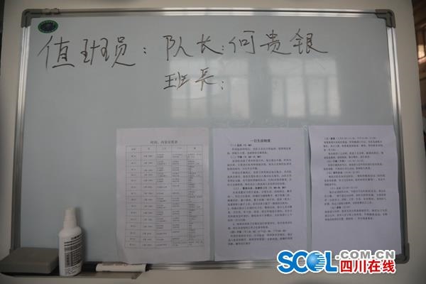 ▲小黑板上,还可以看见值班队长何贵银的名字。