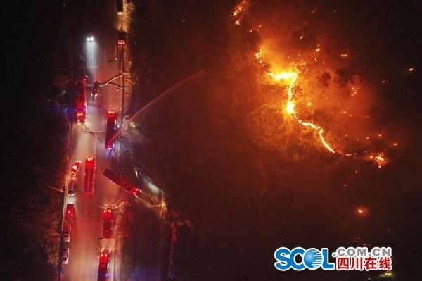 四川在线消息(记者 何勤华 文莎)刚刚!记者从西昌市委宣传部获悉,4月1日晚19时,因风力强、风速快,南线电池厂后山火线很快向东蔓延至海南街道办后山,形成南线和东线。在省州市联防指挥部的部署下,消防人员、扑火人员、洒水车辆和人员等的全力出动、奋力扑打下,确保了海南加油站、光福寺等重点区域安全。