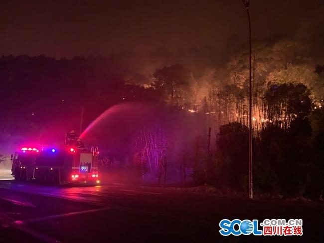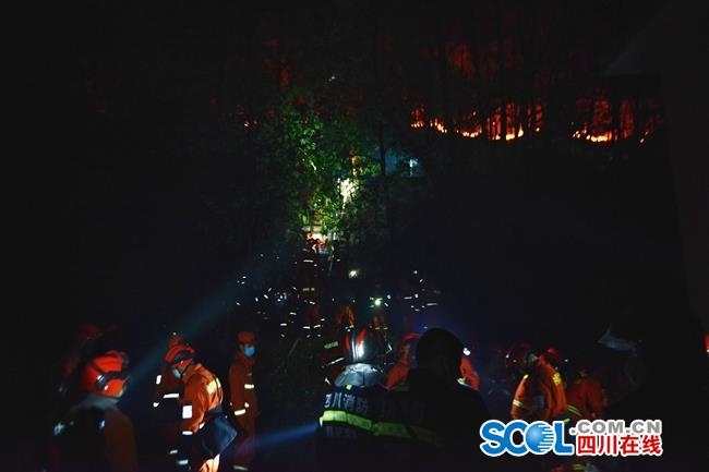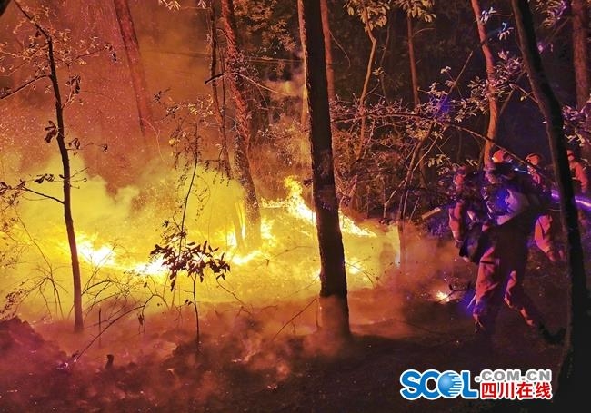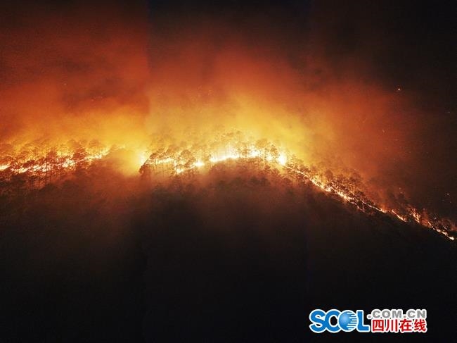 4月1日晚23时,西昌泸山上的火线把天空映照得通红,呼啸着向山脚压来。泸山脚下人头攒动,各方救援力量紧急集结,迅速投入战斗。