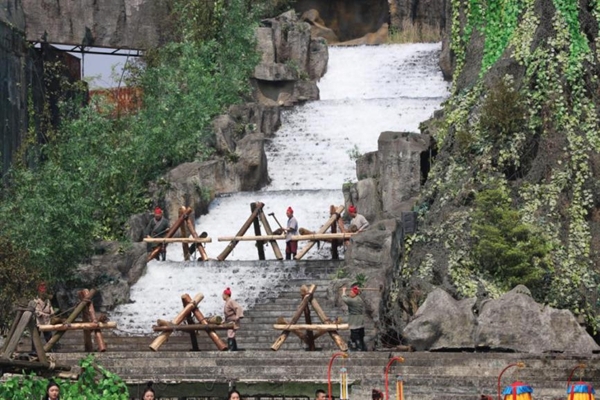此外,在H5“云放水”活动中,网友可与主播一同倒计时,通过扫描二维码进入到古典又摩登的“云放水”活动页面,与全球网友一起“点亮都江堰”参与到活动当中,通过在页面中触动链接杩槎的牵引绳,拉倒杩槎和竹笼,从而汇聚全球力量共同完成“云放水”,祈福风调雨顺、五谷丰登、国泰民安。