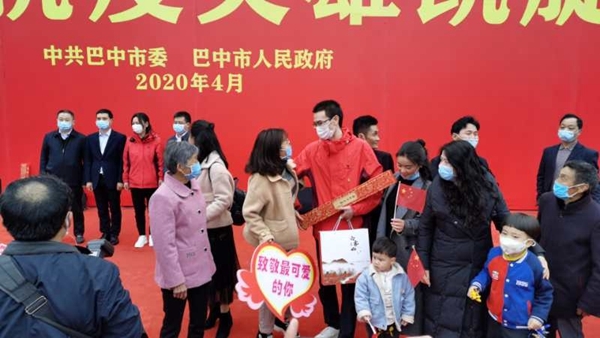 四川在线消息(施皓文 白川东 谭小龙 记者 史晓露)4月3日下午,巴中援湖北医疗队的10名医护人员乘坐专车抵达巴中人民广场,他们的亲人朋友和自发赶来的市民们已早早等候在这里,大家挥动着双手,高喊着“巴中人民欢迎英雄回家”。