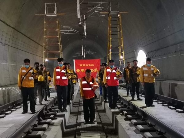 参与成昆复线建设的西昌工电段干部职工在岩岱隧道默哀致敬