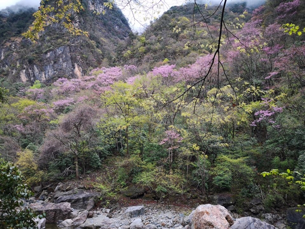 唐家河国家级自然保护区是“四川十大最美花卉观赏地”之一,拥有目前发现的全国最大的野生紫荆花群落,每年4月,唐家河自然保护区内,草长莺飞、杂花生树,山涧河谷紫荆竞相绽放,满山遍野变成了花的海洋,徜徉其中,让人如在人间仙境、梦幻天堂。