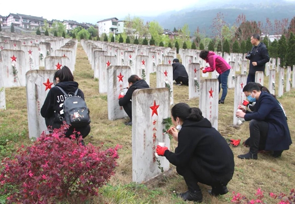 在做好疫情防控的前提下,巴中各区(县)也通过预约限量、分时错峰、实名登记、测量体温、佩戴口罩、绿码通行等举措,组织烈士亲属、党员干部、学校师生、退役军人等社会各界代表走进烈士陵园,有序开展实地祭扫,通过敬献鲜花、擦拭墓碑、给墓碑描红等绿色文明方式,缅怀革命先烈。各烈士陵园还积极开展代祭扫服务,并通过微信、抖音等平台把服务全过程实时直播给远在他乡的烈士亲属。