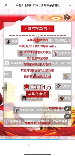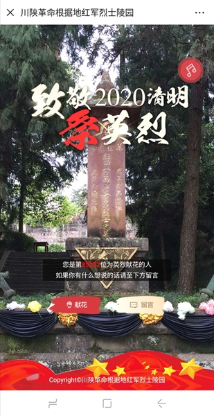 网上祭扫正成为一种趋势。连日来,巴中市、区(县)退役军人事务部门组织机关干部、学校师生、企业员工,登录各地退役军人事务部门、烈士纪念设施管理单位门户网站、微信公众号上开设的“致敬·2020清明祭英烈”活动网页,在网上祭拜英烈、敬献鲜花、签名寄言。4月4日清明节当天,全市各界通过网上祭扫、缅怀先烈逾12万余人次,自3月中旬开通网上祭扫英烈活动以来,目前累计有超过86万余人次进行网上祭拜。