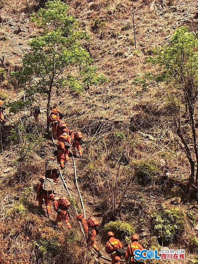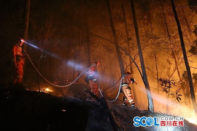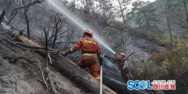 根据火场烟点分布,6日凌晨5点钟,四川省森林消防总队前方指挥部及特勤大队150人,阿坝支队150人,凉山支队157人,训练大队50人,在火场北线东西两侧之间的药铺沟一线,采取水泵和常规机具相结合的方式,对山上的明火和烟点进行扑打清理。