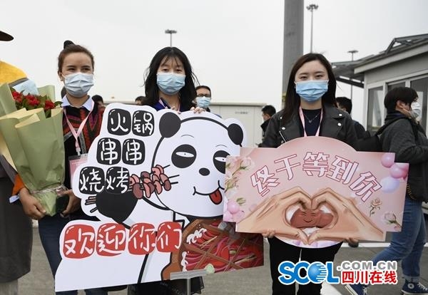 记者了解到,为了全力保障英雄们回家,双流机场安排了316机位作为专用停泊机位,提前数小时达到机位划定工作区域,并为接送医疗队的车队开辟入场绿色通道,并精心准备了162束鲜花,以及“蜀你最好,我们迎您回家”“川军威武,成都机场欢迎援鄂医疗队凯旋”等横幅,欢迎白衣战士们。