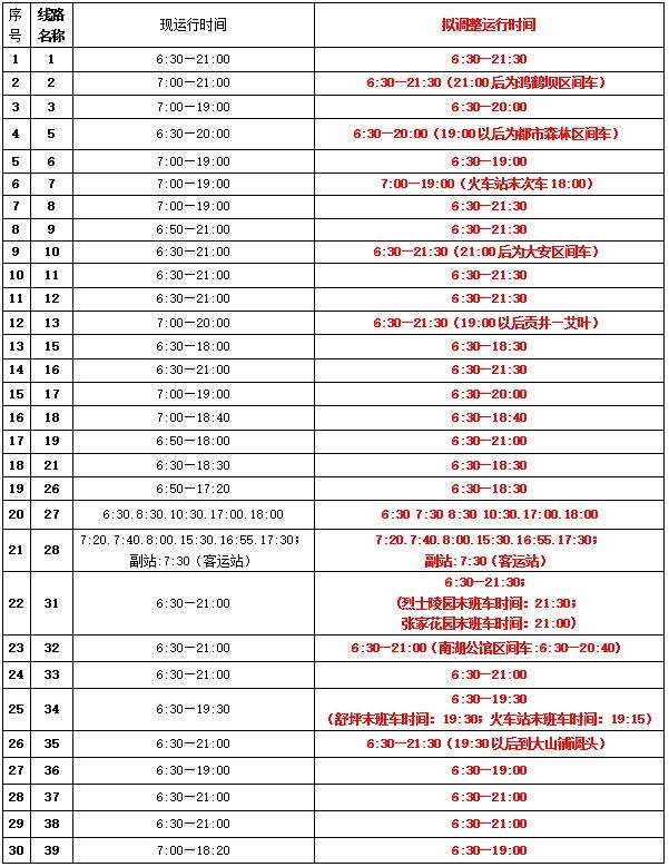 4月7日,记者从自贡公交集团获悉,即日起,自贡56条常规公交线路首末班时间进行优化调整,提前首班发车时间,延长末班车收班时间。同时,实行主副站双向发车方式,以更好满足市民出行需求。
