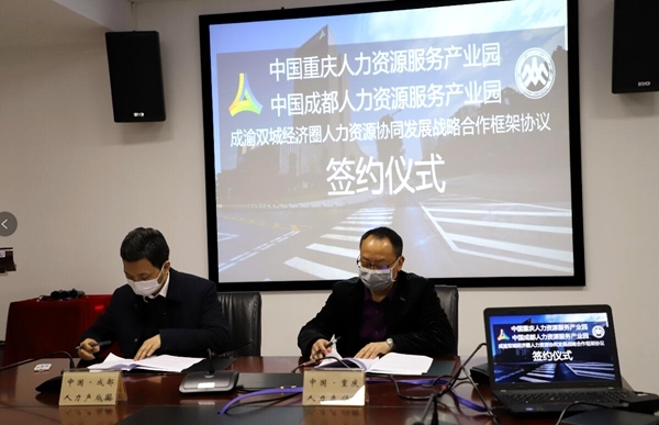 4月2日上午,四川省人力资源和社会保障厅与重庆市人力资源和社会保障局签署《 共同推动成渝地区双城经济圈建设川渝人力资源和社会保障合作协议》,就优化人力资源市场要素配置、推进公共就业创业服务协同等7个方面30项内容和41项重点任务达成合作共识。协议的签订,为川渝人力资源服务产业发展开启了新机遇。当天,中国成都人力资源服务产业园(成都人才园)抓住机遇借力发展,与中国重庆人力资源服务产业园签署合作协议,共促成渝经济圈人才高效聚集。