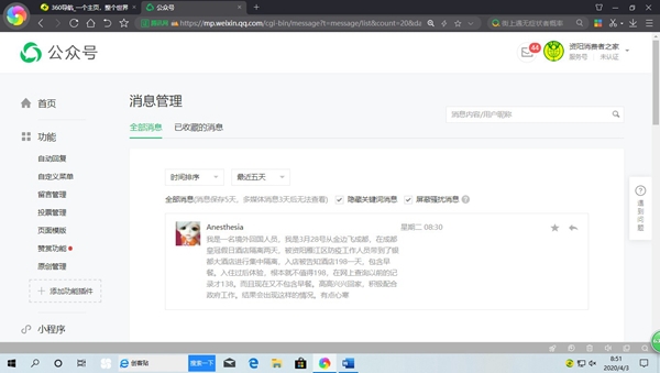 由于疫情严峻的特殊情况,消委会根据调查了解到的实际情况,通过网络平台对消费者进行了回复,酒店方响应政府号召,为疫情防控做出积极贡献和不懈努力,不存在违法违规和侵害消费者合法权益的行为,希望消费者能够理解与支持,消费者表示满意和理解。