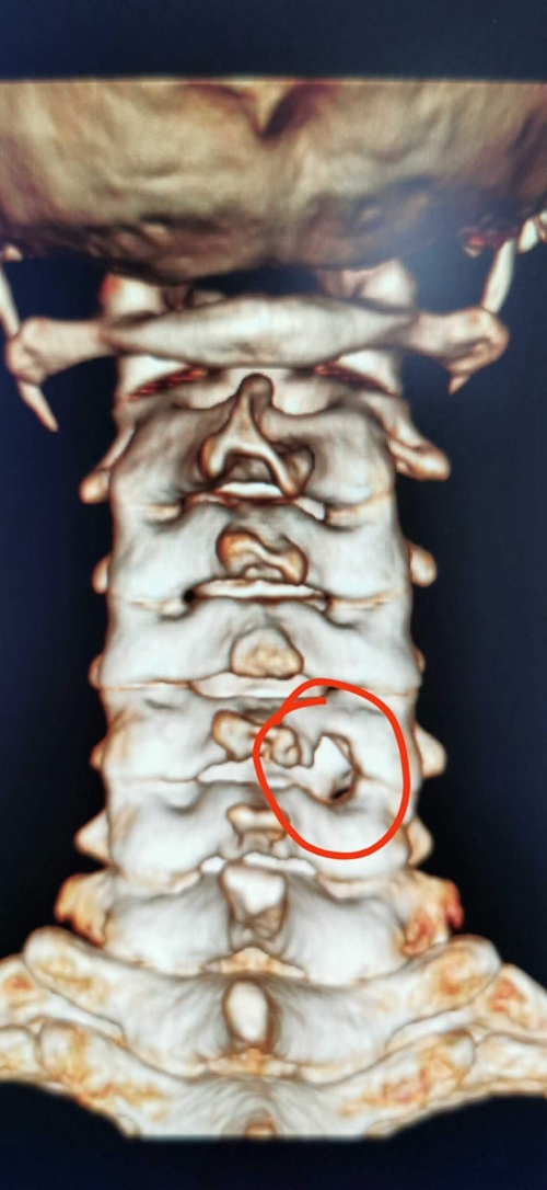 术后复查CT,颈椎上面的小孔