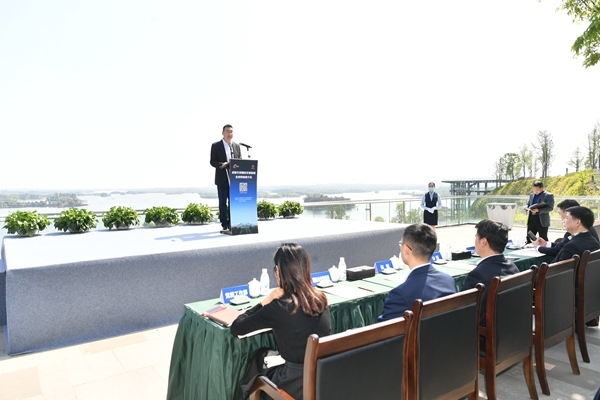 4月8日下午,成都天府国际空港新城全球网络推介会在三岔湖畔马鞍山观景平台举行。