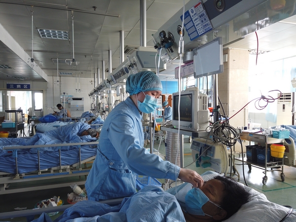 4月8日,华西绵竹医院重症监护室内,换上“战袍”,姚红蕾回到与病魔争分夺秒作战的“战场”。“感觉就像回家,熟悉的环境,忙碌的战友,一切都那么亲切。”