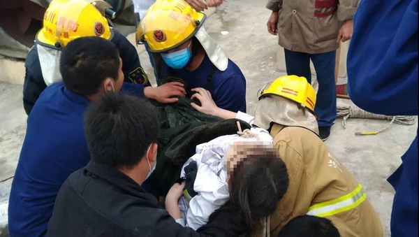 在救援指挥员口令下,应急队员同时用力提收救援绳,小梅一点一点的靠近烟道出口。终于经过30多分钟的紧张救援,在民警、应急队员、医护人员的共同努力下,小梅被救出。