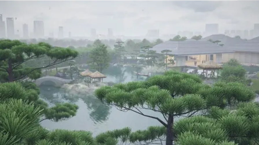 据介绍,成都张大千博物馆将作为公园中最重要的文化节点呈现,为公园内规划的四级服务设施中型林盘。博物馆南临绕城高速,西临科华南路,东、北临锦江,总用地面积约104亩,总建筑面积约14620平方米,以张大千亲自设计建造的故居“八德园”为意象蓝本,将博物馆、美术馆、园林艺术馆三馆合一,形成独一无二的“馆园一体”的专题艺术博物馆。博物馆建筑采用覆土消隐、分散布局的方式融入景观环境,形成“一湖两山多组团”的总体空间格局。主体建筑各展厅由高差变化的连廊串联形成参观流线,形成富有层次感的空间感受,实现馆、园、景的有机融合,展现小而美的隐逸气质。景观设计以松、竹、水、石为主调,融入大千喜爱的成都本土植物,展现大千山水画境。