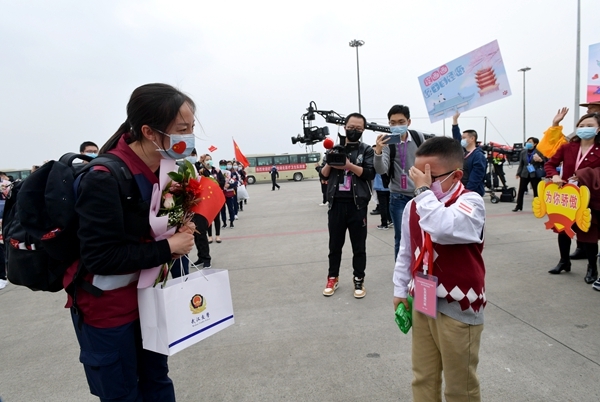 在飞机到达成都时候,老公带着儿子来接我。当2个多月没有见面的儿子看到我的时候竟然哭了起来,我只好安慰他说,娃娃,不要哭了,妈妈两周后就回家了。从机场到隔离酒店,骑警一路为我们开道,沿途迎接我们的成都市民和他们手中竖起的大拇指,都让我们心存感激。我们真的只是做了职责所在的选择,这个国家和社会却回馈了我们更多。