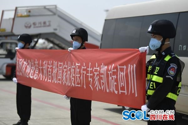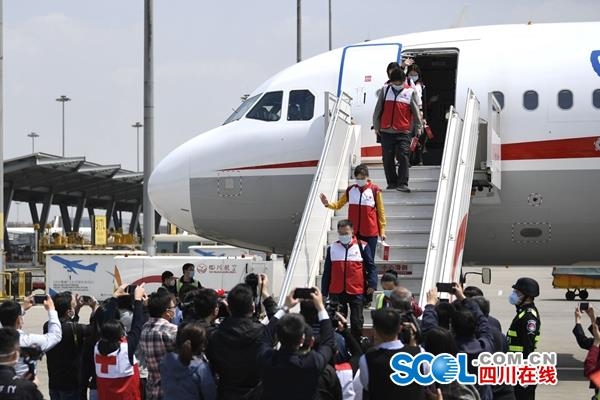 四川在线消息(记者 李寰 付真卿 摄影 杨树)4月10日下午1点15分左右,从温州飞来成都的川航3U8932次航班稳稳降落在双流国际机场。中国首批赴意大利抗疫专家组的5名四川专家结束在温州的14天隔离后,乘机回到四川。