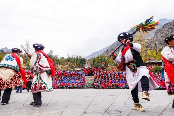 穿着民族服装的桃坪羌寨羌族群众。谢晓庆摄