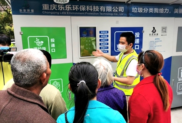 据悉,内江经开区是内江市首个垃圾分类试点区。“汉渝小区是我们试点的重要一环,目前已经在该小区投入两台垃圾分类投放智能设备,以及两个垃圾分类亭。”内江经开区综合行政执法局副局长吴小红说道。