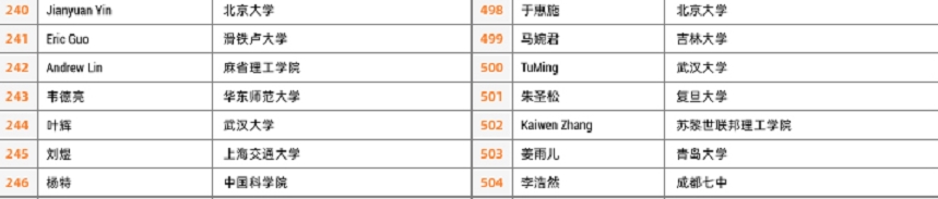 值得一提的是,决赛选手中十多位选手来自中学,其余则来自麻省理工、斯坦福、北大、清华等知名高校。