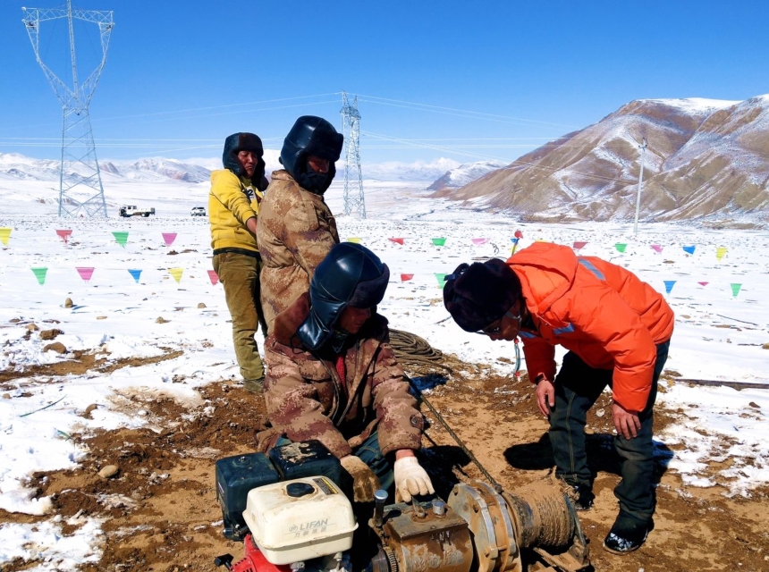 他们是来自国网四川电力送变电建设有限公司的建设者们,绝大多数来自2600公里外的四川成都、南充和凉山地区。今年2月底、3月初,他们按照国家电网有限公司复工复产统一部署,包机进藏,建设世界上平均海拔最高的超高压输电线路——阿里与藏中电网联网工程查务-吉隆双回500千伏线路,其中,由国网四川送变电公司承建的包7标段,平均海拔4703米,是该工程平均海拔最高的标段。