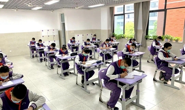 每个班还配备了2位班主任,学校给每个班级都安排了副班班主任,与班主任一起共同管理,确保复课期间防疫工作到位。